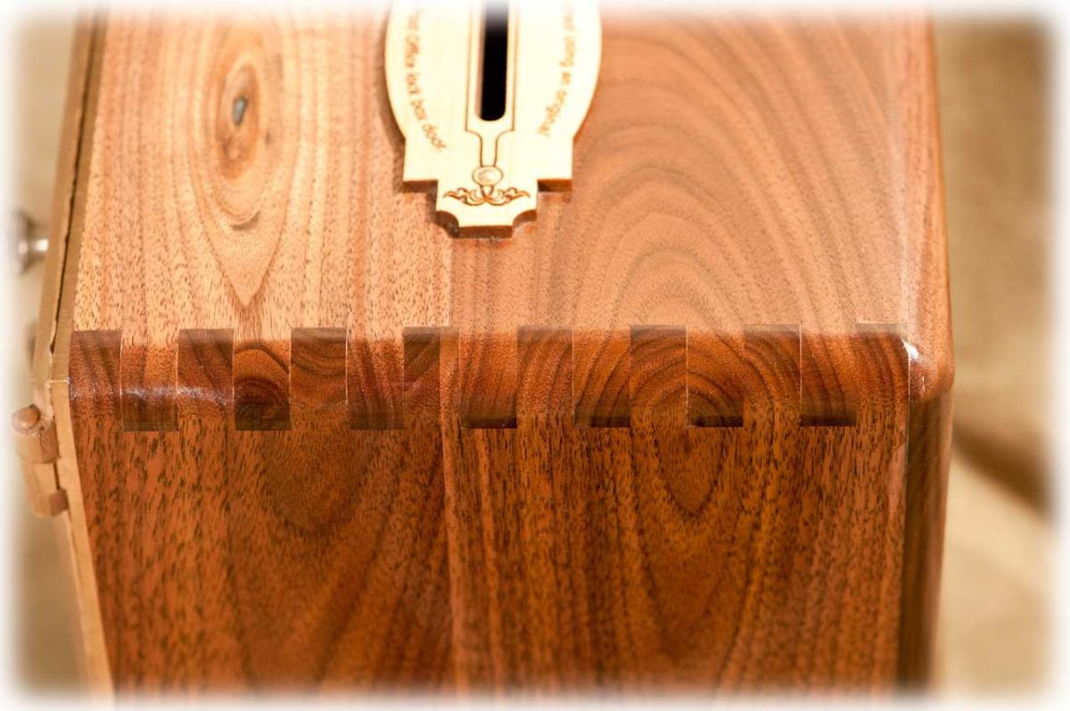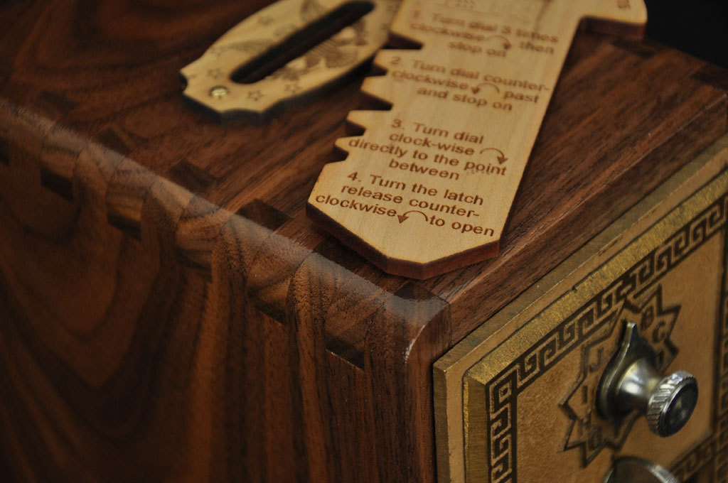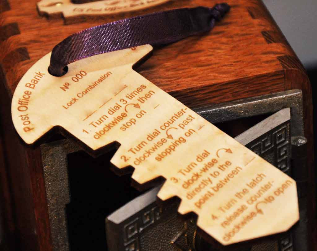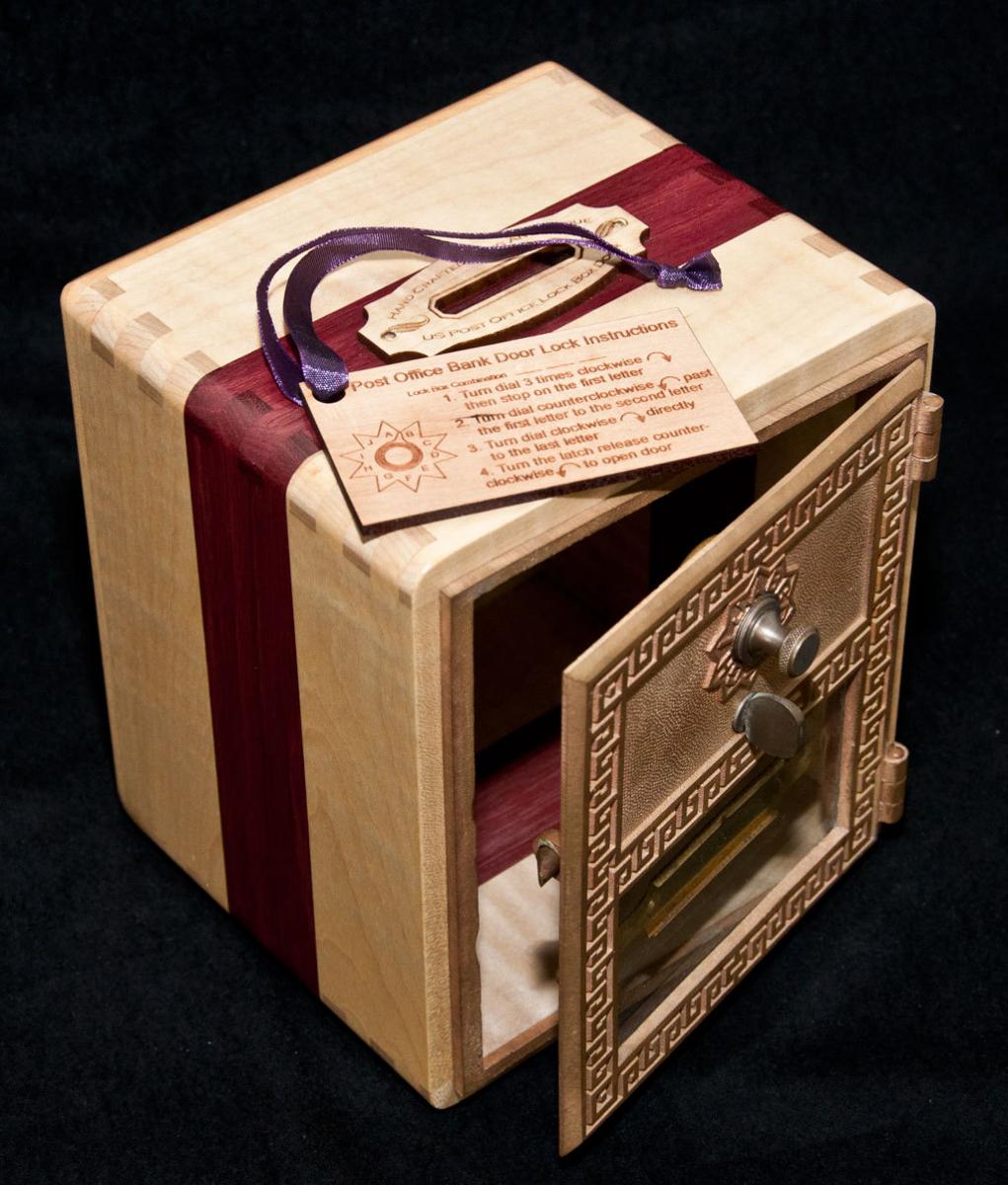 I can’t tell you off the top of my head how many of these banks I have made. They are quite a novelty and everyone loves them. All of the doors I get are antiques from Ebay for next to nothing. I’ve had doors dating back to the 1800’s, though usually a little more pricey. I had a client actually supply a door that was in her family for generations and she wanted something unique made out of it. These are really easy to batch out since all the #1 and #2 size doors, which are the sizes I use, from different manufacturers are all the same size and I’m sure they sell pretty well if you are doing craft fairs or the like. The coin slot covers and key shaped combination instructions I designed in Corel Draw and cut out on my laser engraver. I laser engrave a serial number for each bank in case the owner loses the combo card or otherwise forgets the combination. I have an Excel document with every bank serial number, clients name, combo, date of purchase and a few other bits of information. This has actually come in handy with the first bank I ever sold. I was living in Tennessee and a client from Florida bought a bank for his god daughters birthday, which was months away. He messages me right before her birthday asking me for the combination. I asked him for the serial number that was engraved in my logo on the bottom. I looked up the combo and emailed him back. He was, consequently, very grateful for this bit of customer service.